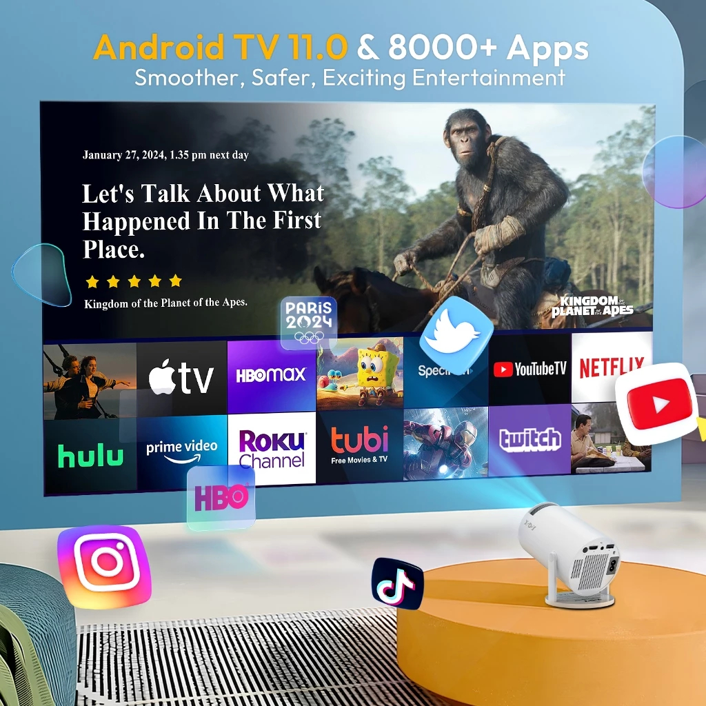 Smart Proyektor LCD Android 11 720P Built-in Speaker 220 ANSI Support Netflix YouTube
