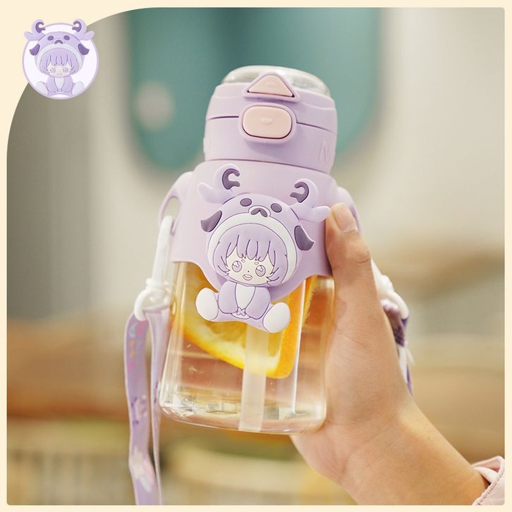 Botol Minum Anak Sekolah Lucu Kapasitas 650ml Tumbler Tempat Minum Anak Free Sedotan Tali Panjang