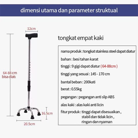 KRUK TONGKAT KAKI 4 ALAT BANTU JALAN/ALAT BANTU JALAN/ TONGKAT KAKI 4/TONGKAT JALAN/TONGKAT MEDIS BERKUALITAS/RINGAN, KUAT, TAHAN LAMA