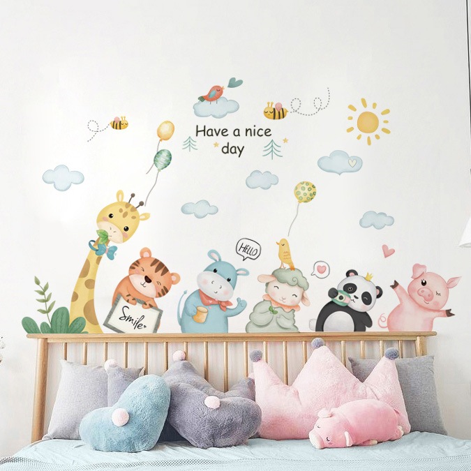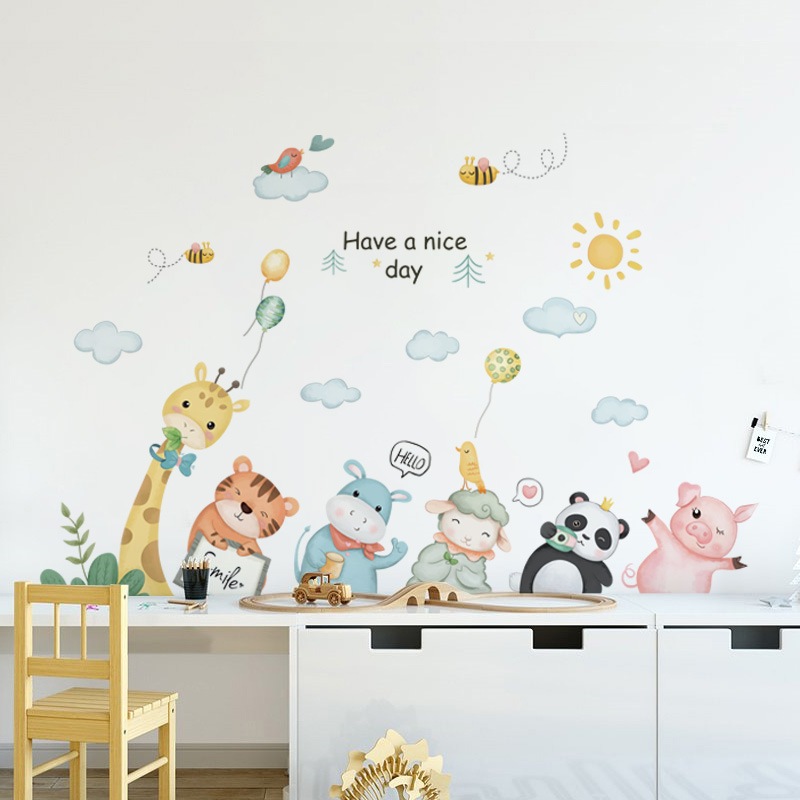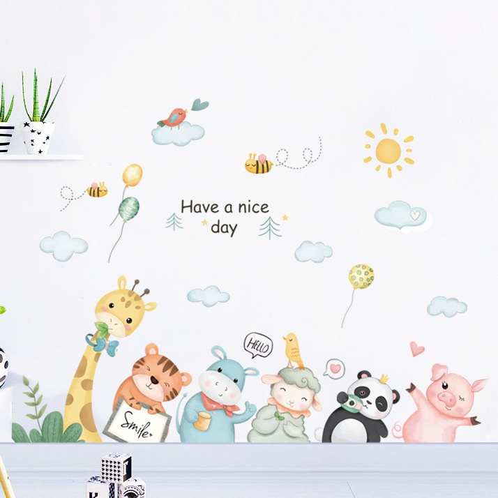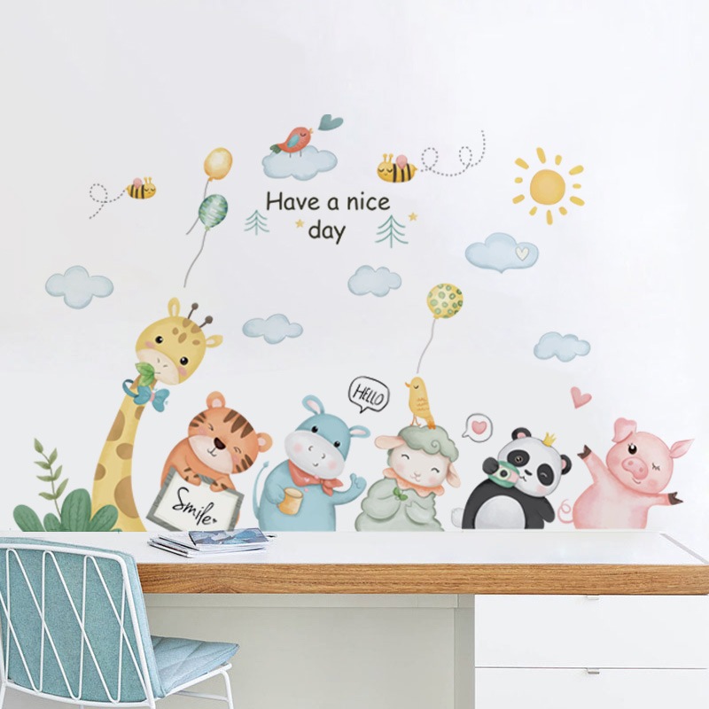 Reliza Wall Sticker Have a Nice Day Animal Hewan Anak Study Zoo Belajar Wallsticker Stiker Dinding