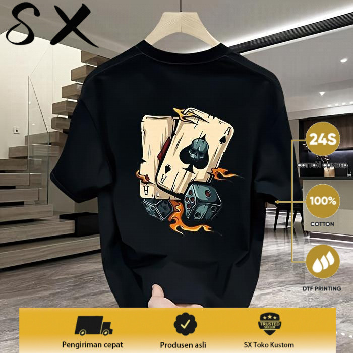SX Fly Boy Baju Kaos Distro Pria keren Retro Oversize t shirt Kaos Hitam Pria 100% Cotton 24S