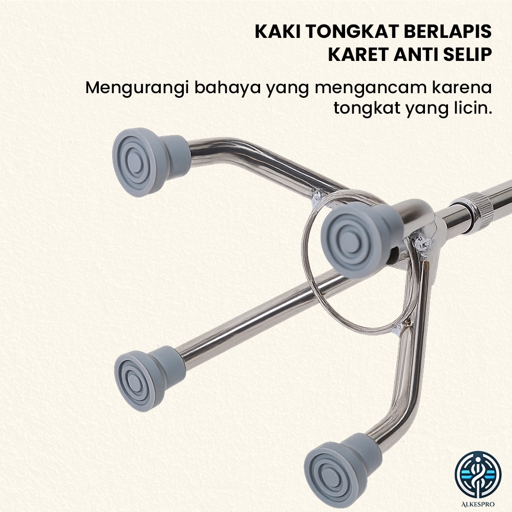 TONGKAT KAKI 4 PREMIUM ALKESPRO – PEGANGAN ANTI LICIN & TINGGI BISA DISESUAIKAN