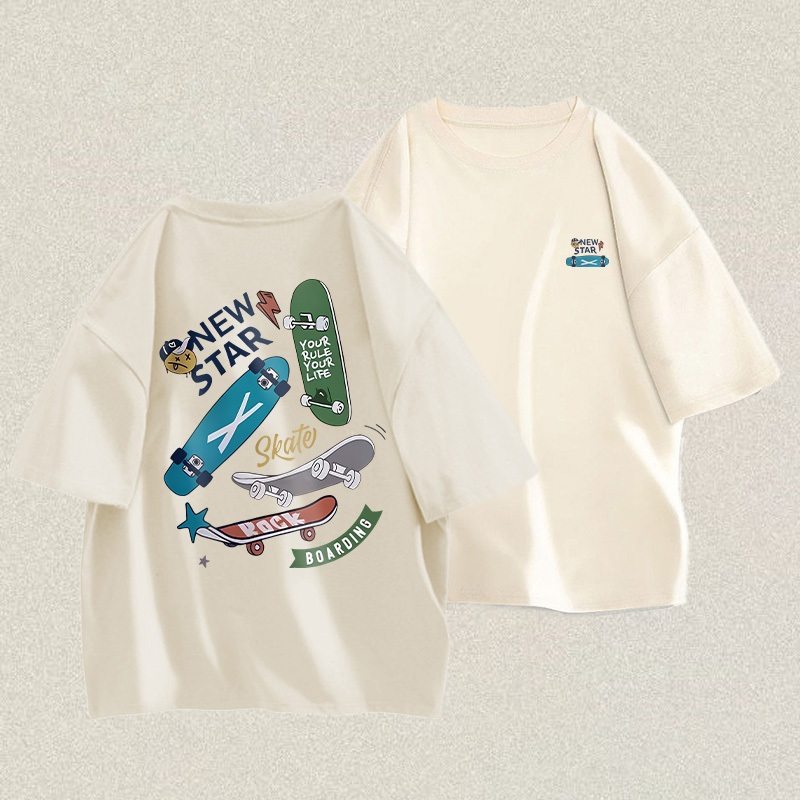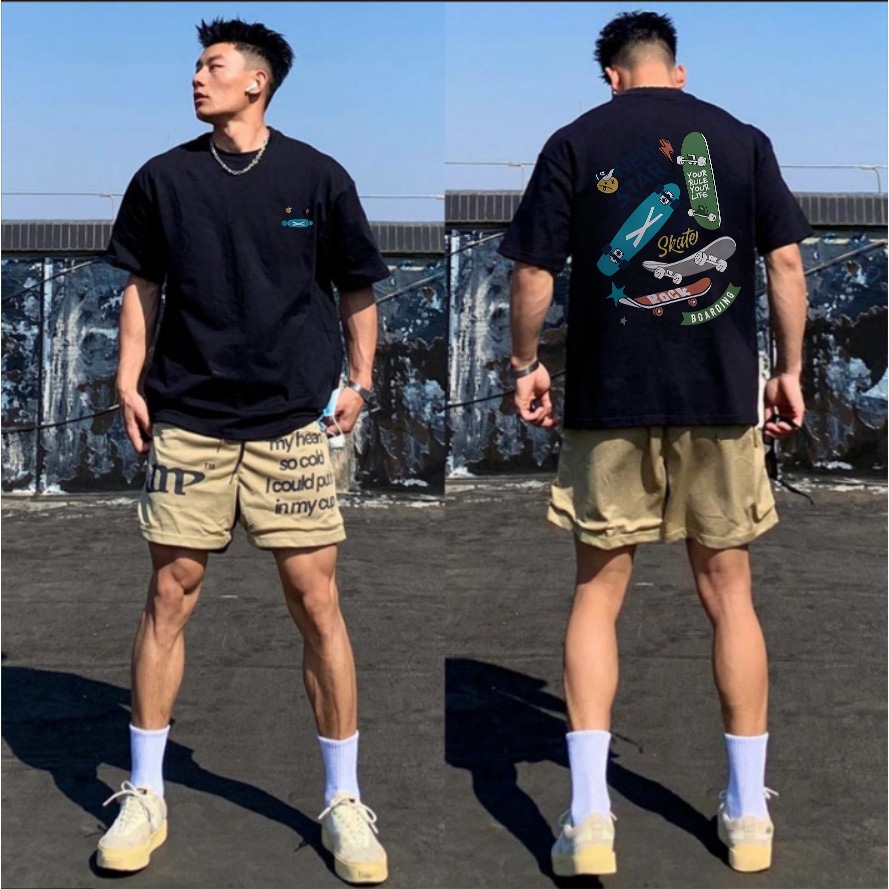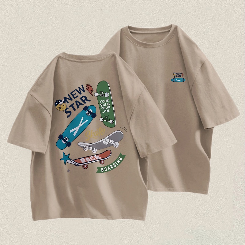 RENELLE Baju Kaos Oversize Pria | Kaos Motif Skateboard Khaki | Kaos Pria Distro Original | Baju Kaos Pria | Kaos Cowok