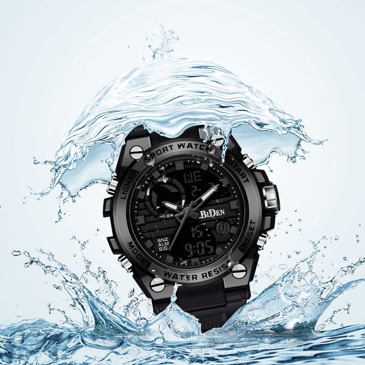 dc'strange.co BIDEN Jam Tangan Pria Digital&Analog Anti Air Olahraga Militer Pria Tali Silikon Luminous Jam Tangan Cowo