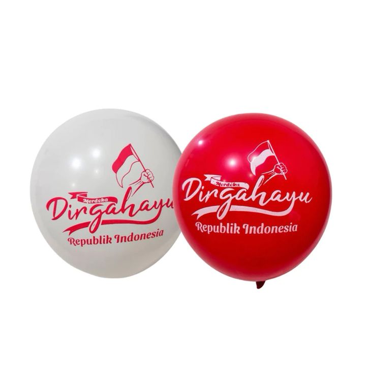 DINOSO Balon Latex Doff 12 inch Motif Dirgahayu Indonesia Merah Putih HUT RI Dekorasi Hiasan Agustusan