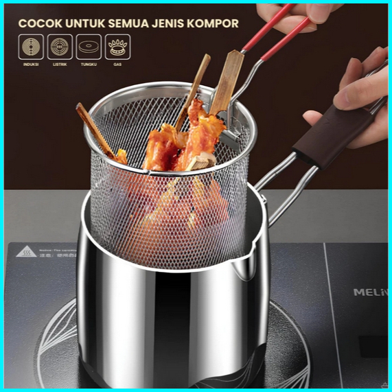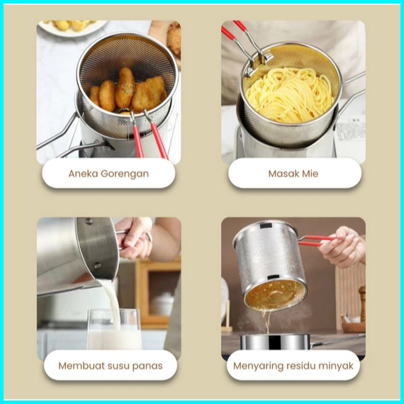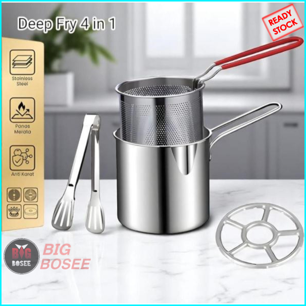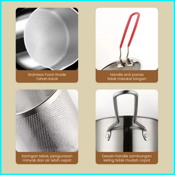 Bb7 - Deep Fryer 4 In 1 Multi Set Panci Penggorengan Rebus Stainless Steel Saringan Capitan Klip Makanan
