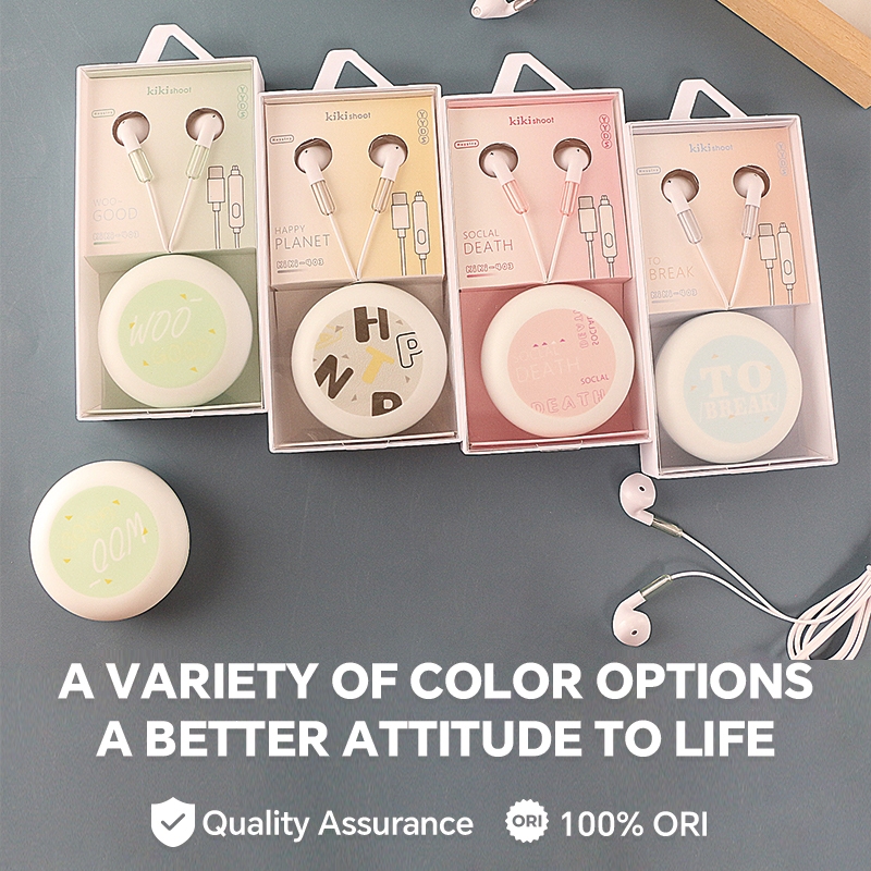 [Star][Kikishoot Headset Kiki-403 Type-C Jack Fashion Words Wired Kabel Earphone Free Storage BoxHi-Fi Stereo Surround