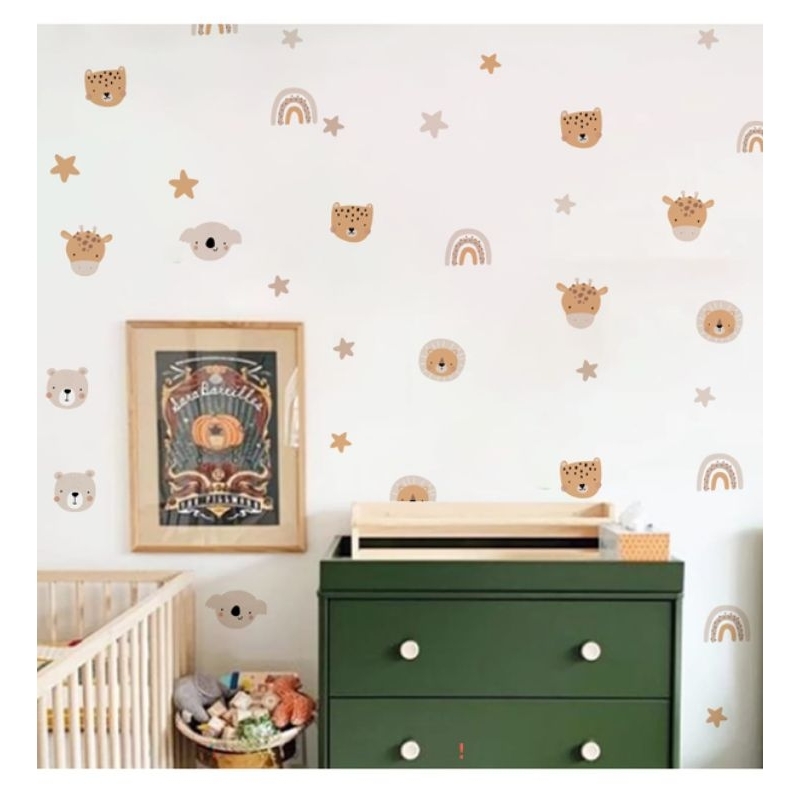 Wal Stiker Dinding Kamar Anak Aesthetic Rainbow Bear Animal Dekorasi Tembok Pelangi boho