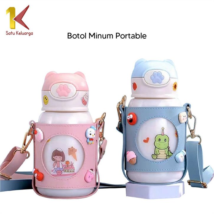 Botol Minum Anak Sekolah Lucu Motif Karakter 650ML Pouch Tumbler Minum Balita Anak TK Sedotan Tali Panjang Anti Tumpah