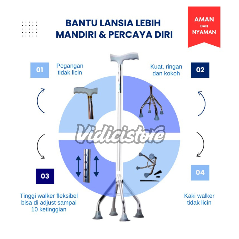 TONGKAT KAKI 4 / ALAT BANTU JALAN TONGKAT KAKI 4/TONGKAT JALAN/TONGKAT MEDIS BERKUALITAS/RINGAN, KUAT, TAHAN LAMA/WALKER ALAT BANTU JALAN