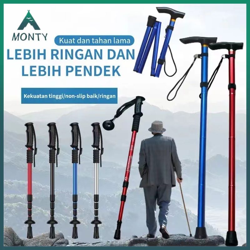 MONTY TONGKAT LIPAT TONGKAT PORTABEL STAINLESS BAHAN TONGKAT LIPAT ALAT BANTU JALAN 1 KAKI