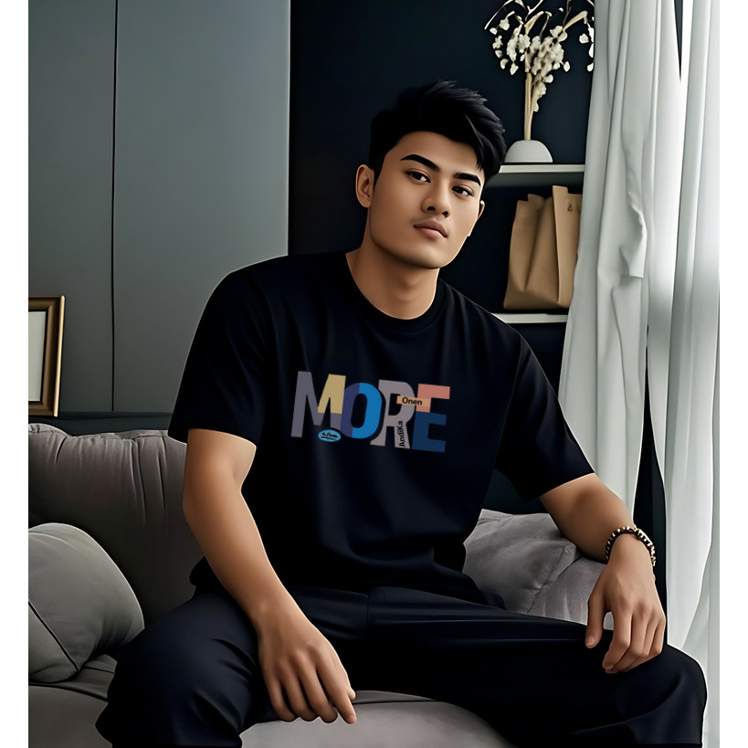 【Kaos Distro Pria】Kaos T-shirt men's clothing MORE Man's Wear Keringat kapas menyerap pakaian laki-laki Dingin dan bisa