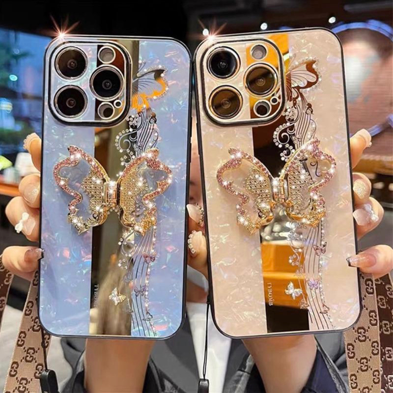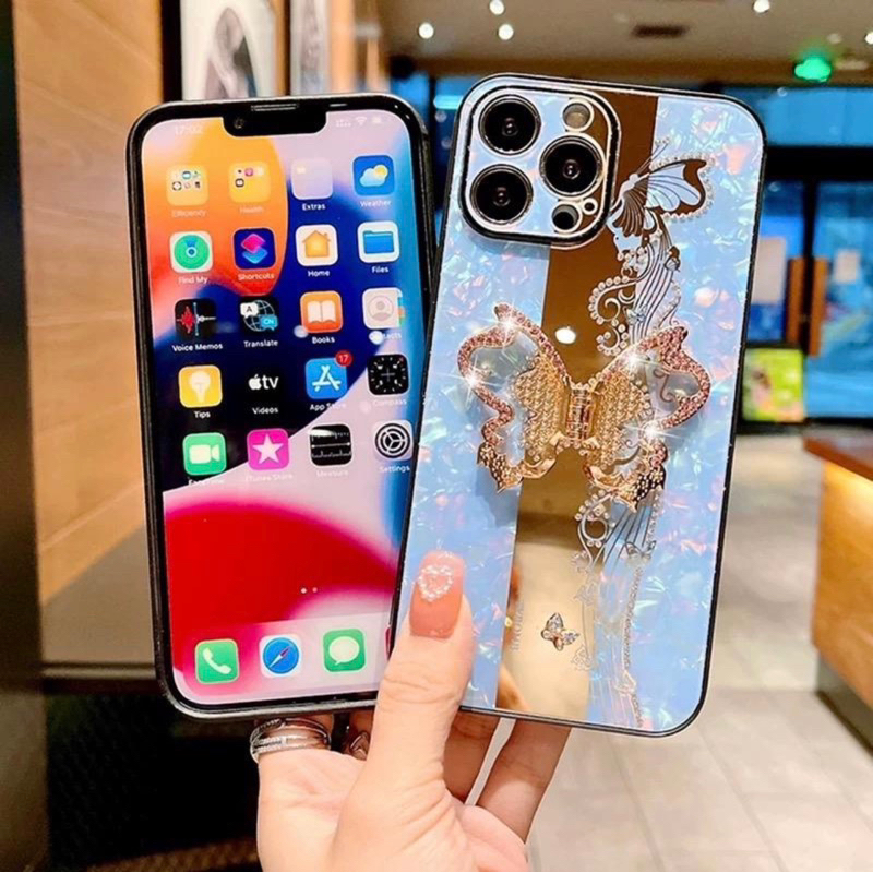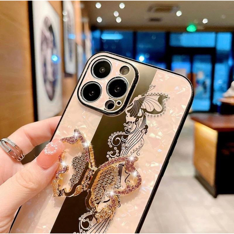 case iphone handphone glass 3d kupu kupu ring stand iphone 7 8 7plus 8plus x xs xr 11 12 13 14 15 pro promax