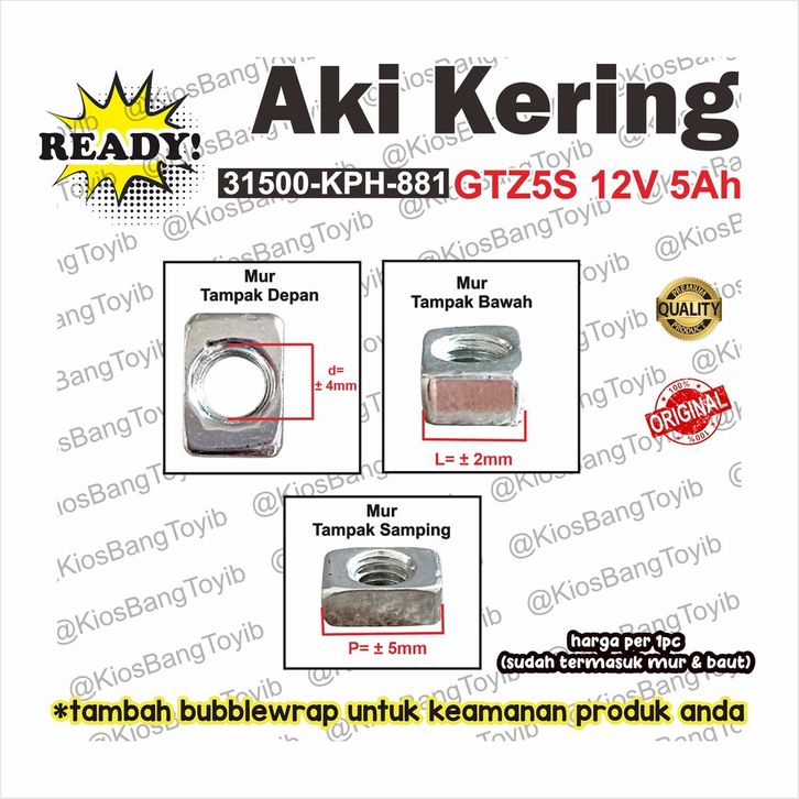Aki Ke ORI Honda GTZ5S Karisma Beat FI Beat Pop Beat Sporty Scoopy Spacy Supra X125 Vario11 ade Revo