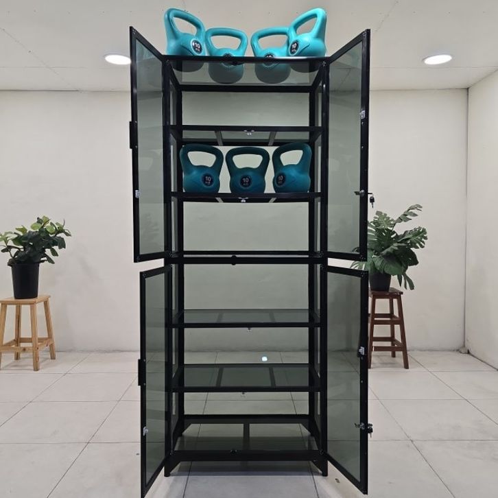 LSG712 80X45X200 b LEMARI RAK SERBAGUNA ALUMINIUM 20U COKLAT FULL KACA RIBEN RAK 6 SUSUN TAS HELM BUKU PAJANGAN
