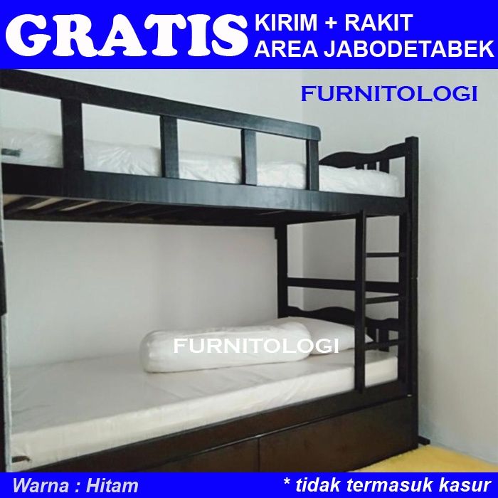 Ranjang Susun 2 Tingkat dengan Laci Kolong Serbaguna 120x200 White Bunkbed Tempat Tidur Susun Dipan Putih