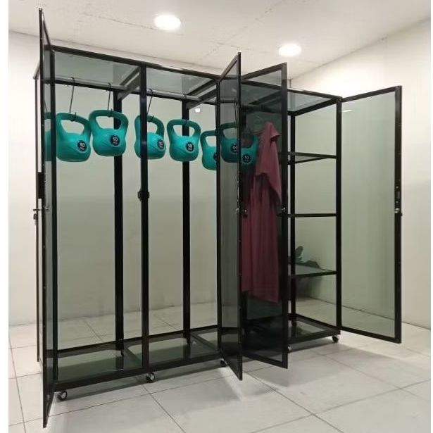 LB 543 150X55X180 b 200X55X180 LEMARI RAK BAJU ALUMINIUM 20U COKLAT FULL KACA 3 MM GANTUNGAN HANGER