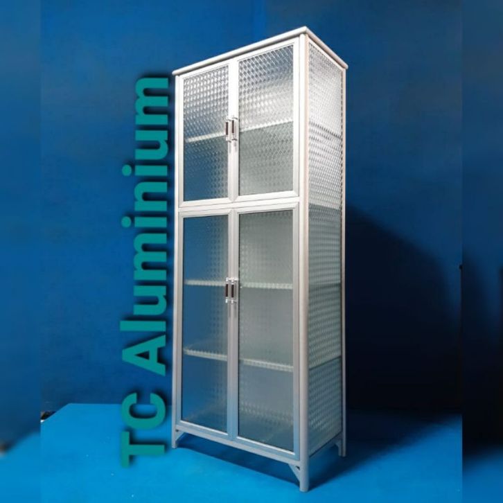 LSG701 60X38X165 s Lemari Rak Serbaguna 5 Susun Aluminium 20U Silver Rak Kaca Motif