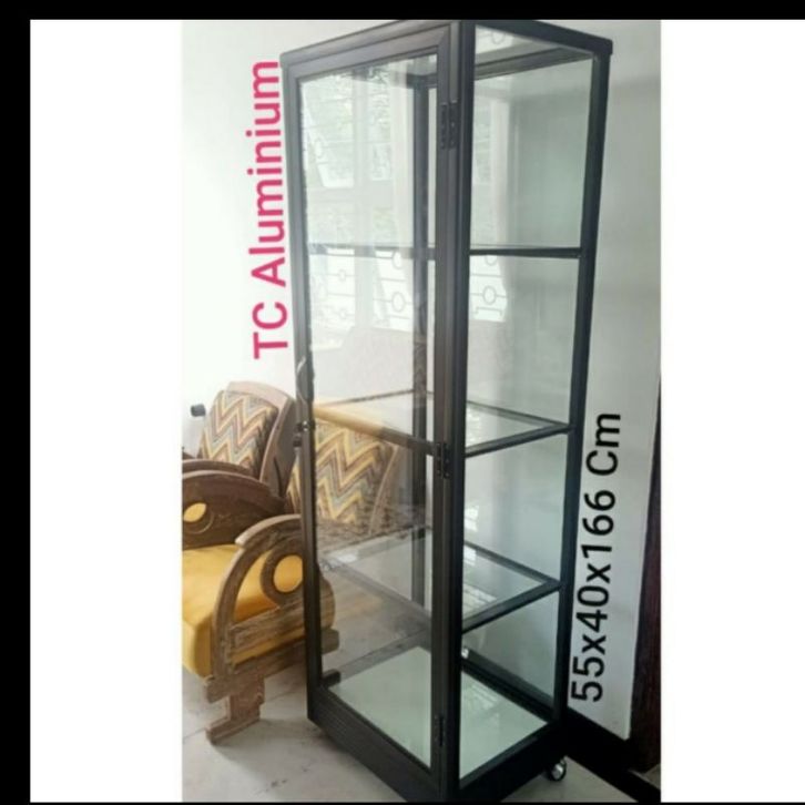 LE601 55X40X166 S/B/W LEMARI RAK ALUMINIUM ETALASE TEBAL SILVER COKLAT PUTIH RAK 4 SUSUN KACA 5 MILI