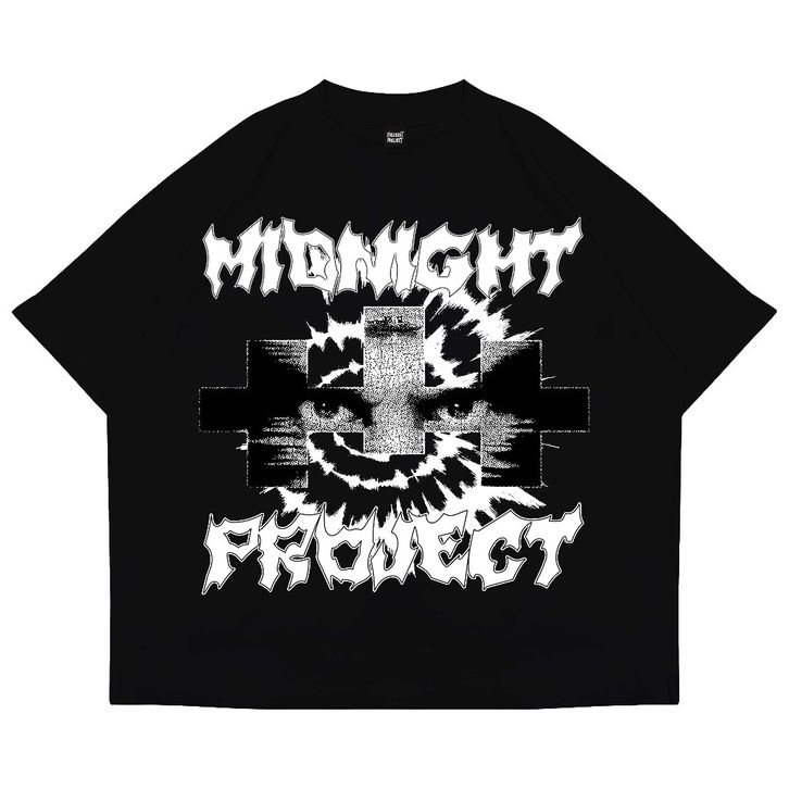 MidnightProject Boxy Oversized Tshirt Eyes Black Unisex Cotton Combed 24s