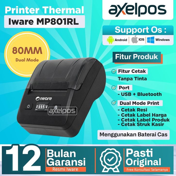 Printer Thermal Mini Dual Mode Usb Bluetooth 80mm - Cetak Struk & Label Stiker Iware MP801RL