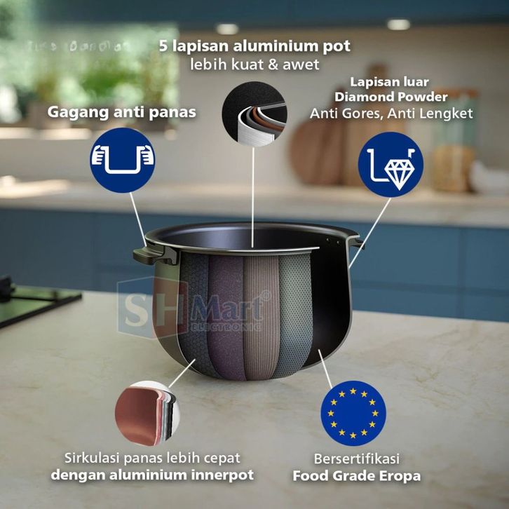 Philips Rice Cooker Digital 1.8 Liter HD4812 Magicom 18 Menu Masak Anti Lengket Garansi Resmi DISKON