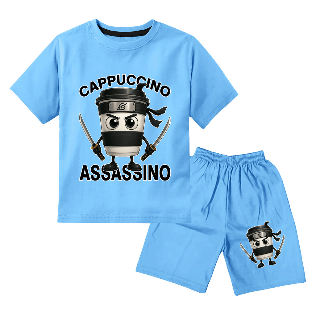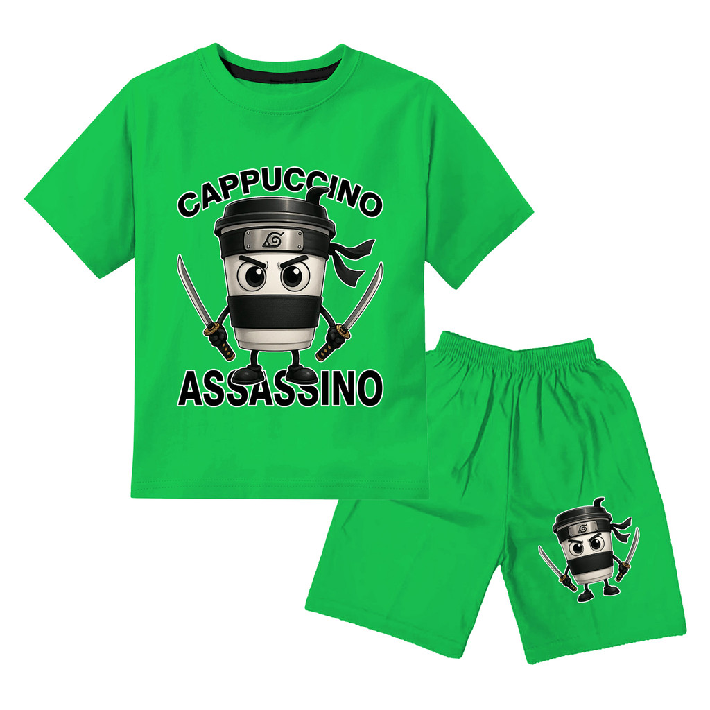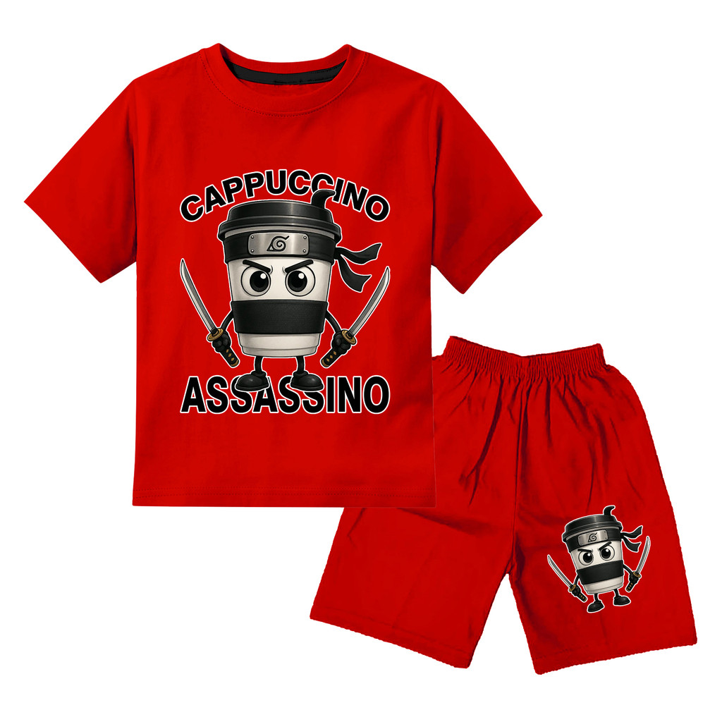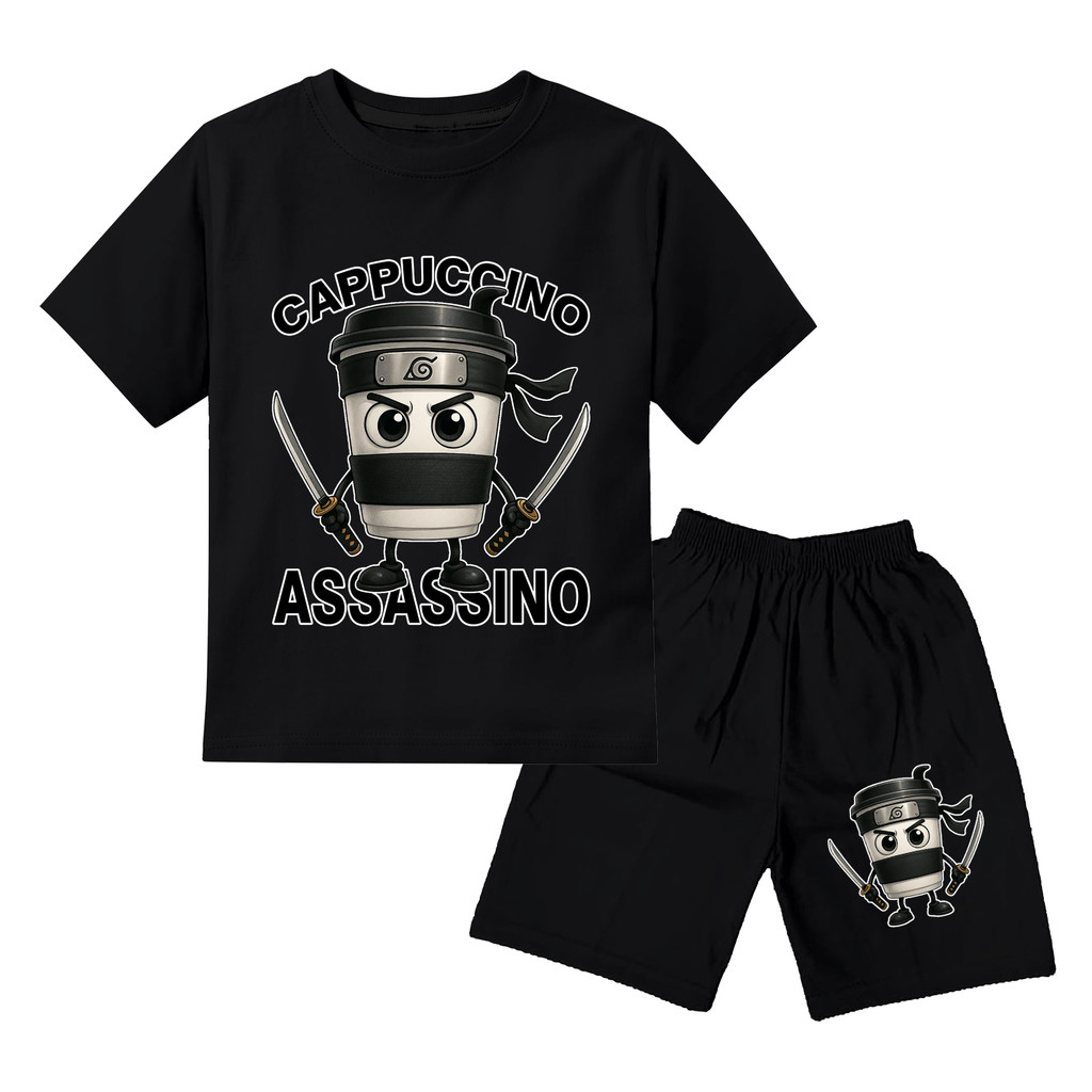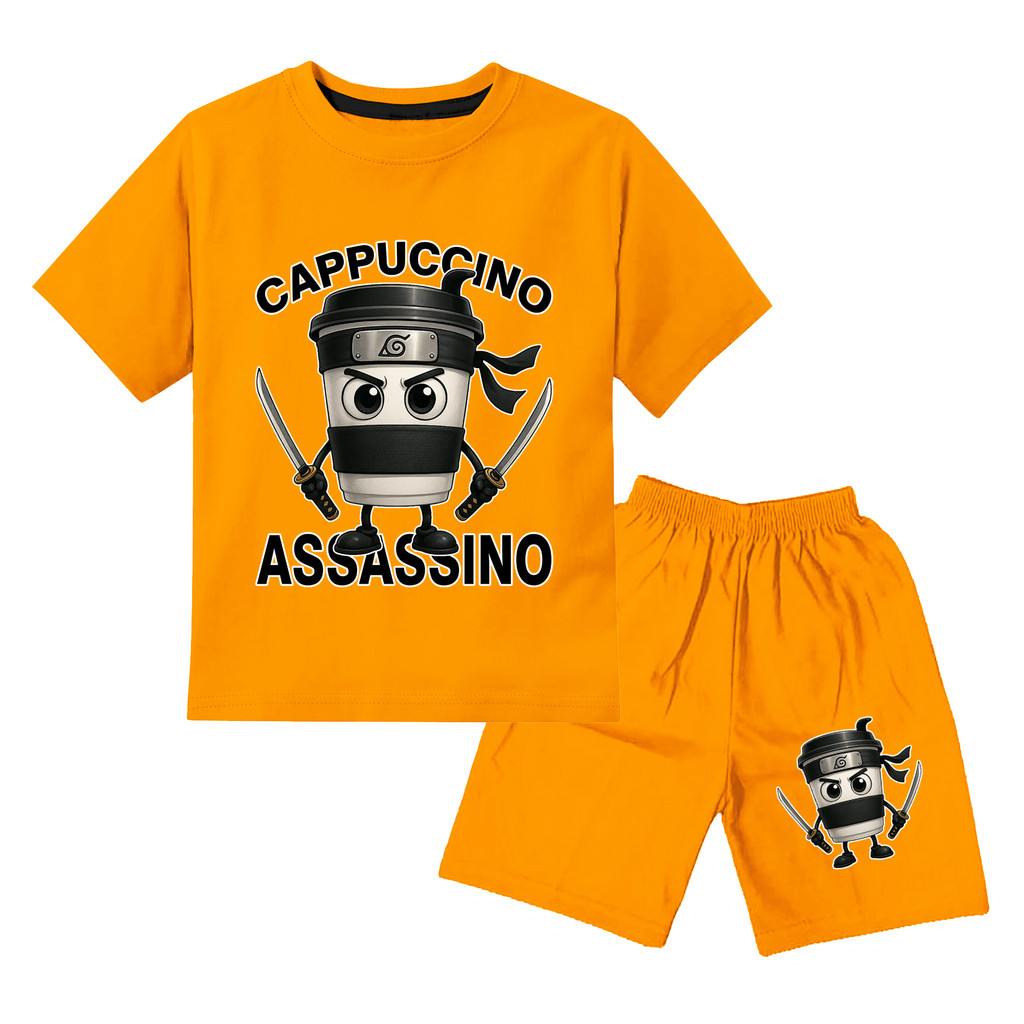 BAJU SET STELAN SETELAN KAOS ANAK LAKI LAKI PEREMPUAN MOTIF ANOMALI CAPPUCCINO ASSASSINO UMUR 1-10 TAHUN BAHAN KATUN PRE