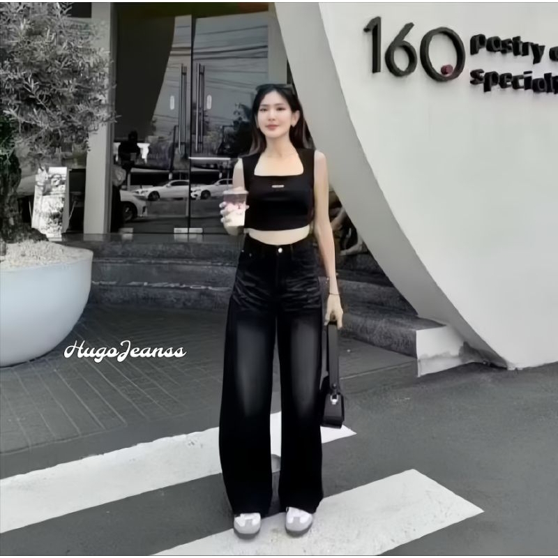 [ UNISEX ] Celana Jeans Whisker Gombrong Highwaist Baggy Pants Hangover Wid Leg Oversize Korean Style Terlaris