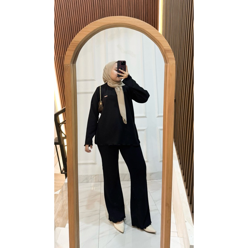 Denacollection Setelan Fuji Celana Cutbray Bahan Knit Japan Premium Casual Santai Celana Dewasa Baju Panjang Nyaman