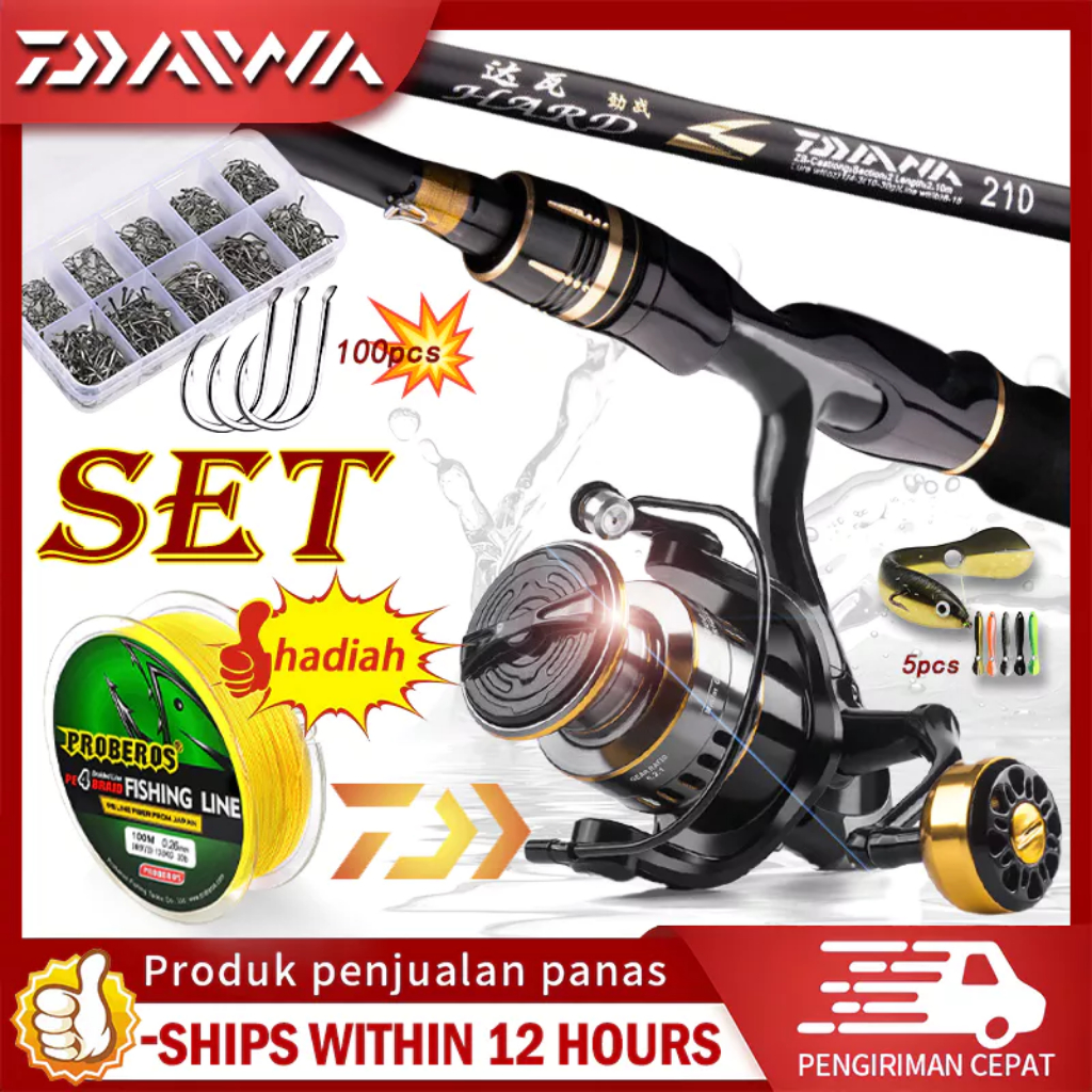 DAIWA Joran Pancing Carbon Pancing Set 2 Sections Set Pancing Spinnning Fishing Rod Reel Set Lengkap Untuk Spinning Fish