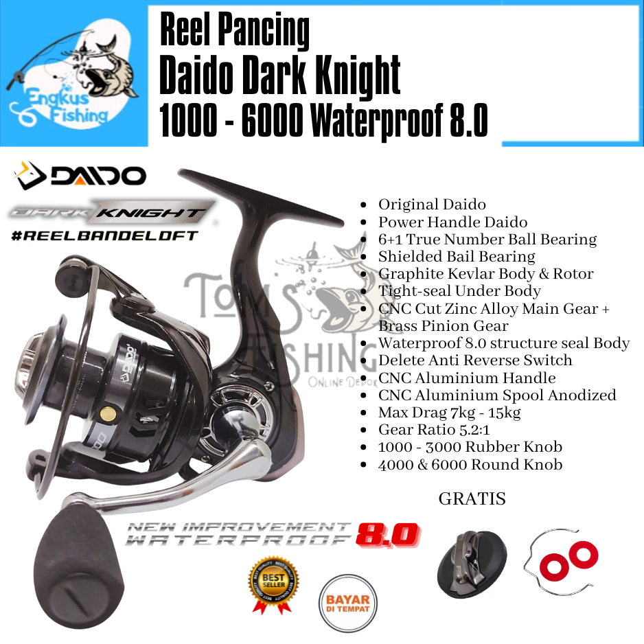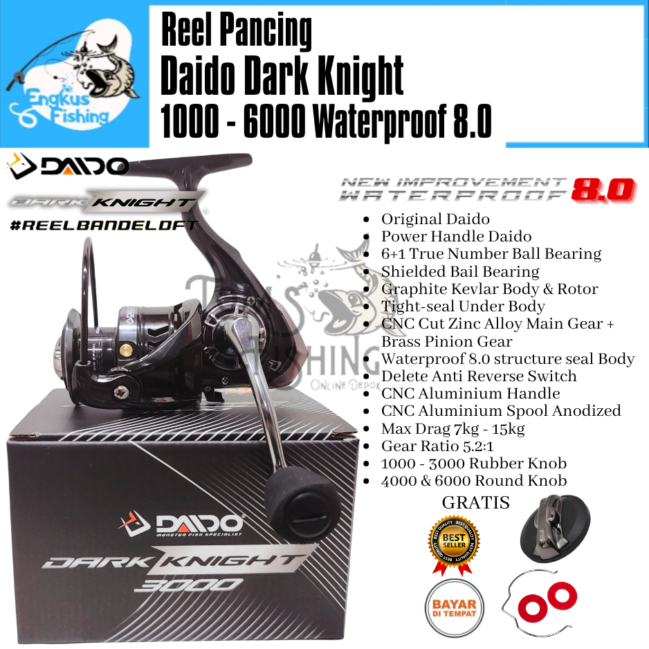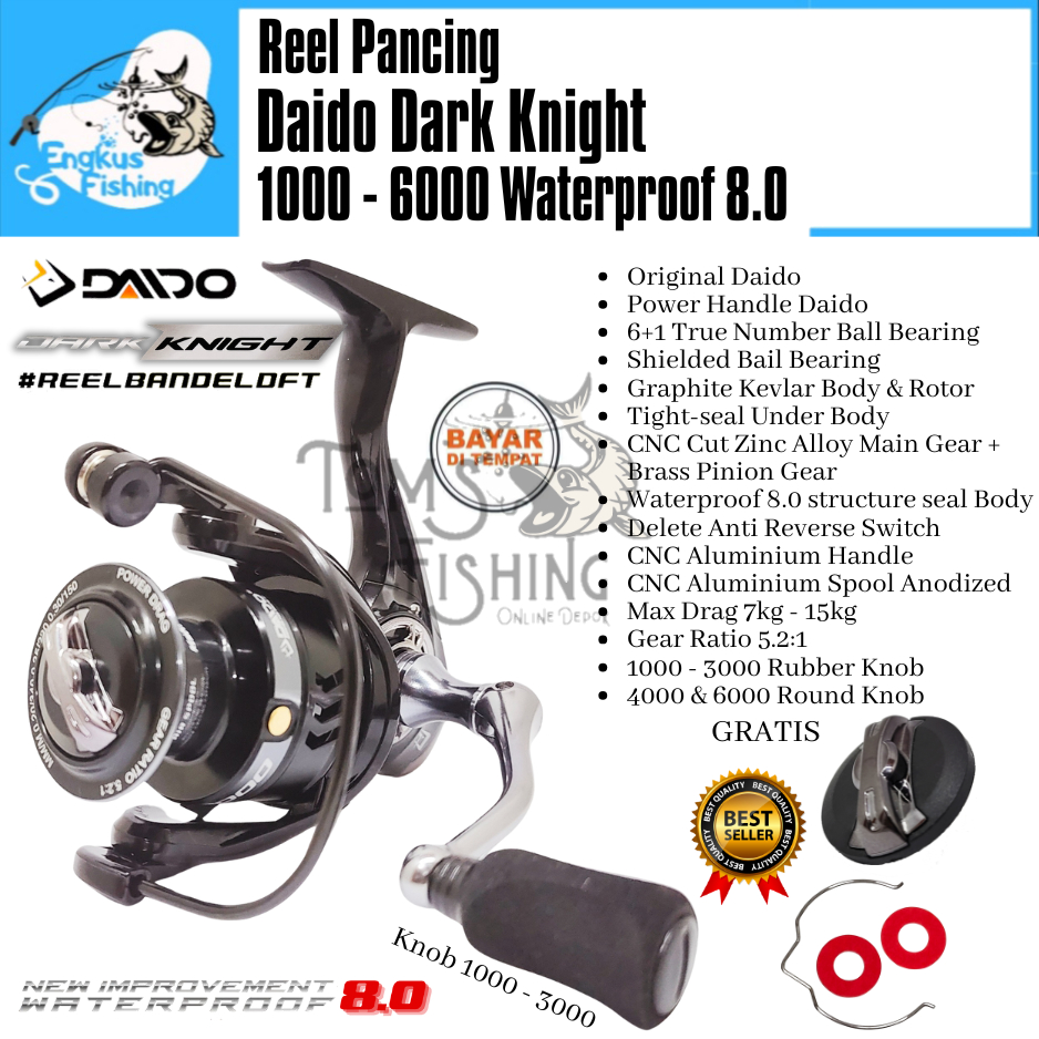 Reel Pancing DAIDO DARK KNIGHT 1000-6000 Waterproof 8.0 (6+1Bearing) Power Handle - Engkus Fishing