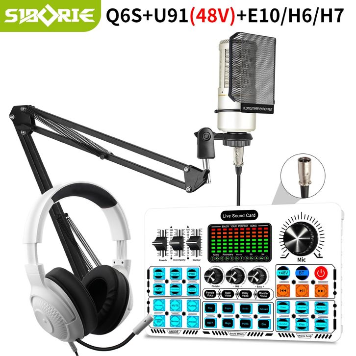 SIBORIE【48V SET】Q6S+U91+E10/H6/H7 PAKET LENGKAP LIVE SOUNDCARD MIC HEADSET 3 IN 1 SET HIFI SOUND QUALITY KARAOKE SA