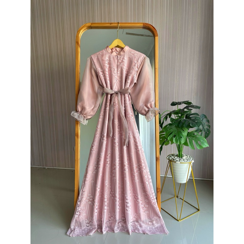 Raya Dress Brukat / Baju Lebaran / Dress Idul Fitri / Gamis Putih