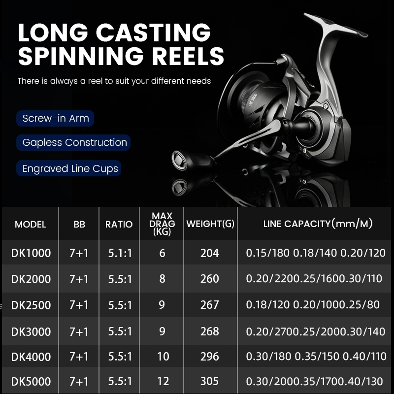 SEAHUNTER x SEASIR TINGHE Power Handle Reel Pancing,2500 Shallow Spool Spinning Reel,7+1BB Ball Bearings, 5.5:1 Gear Rat