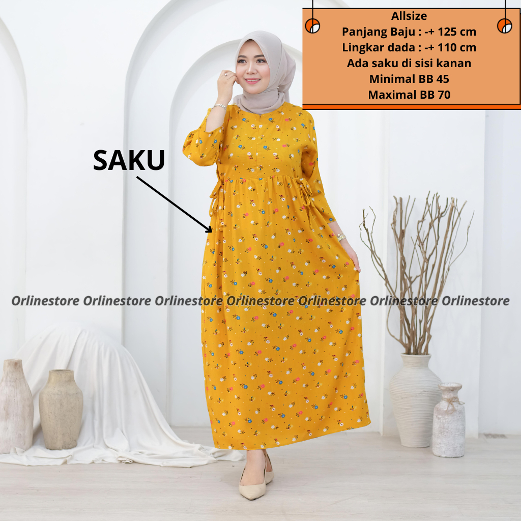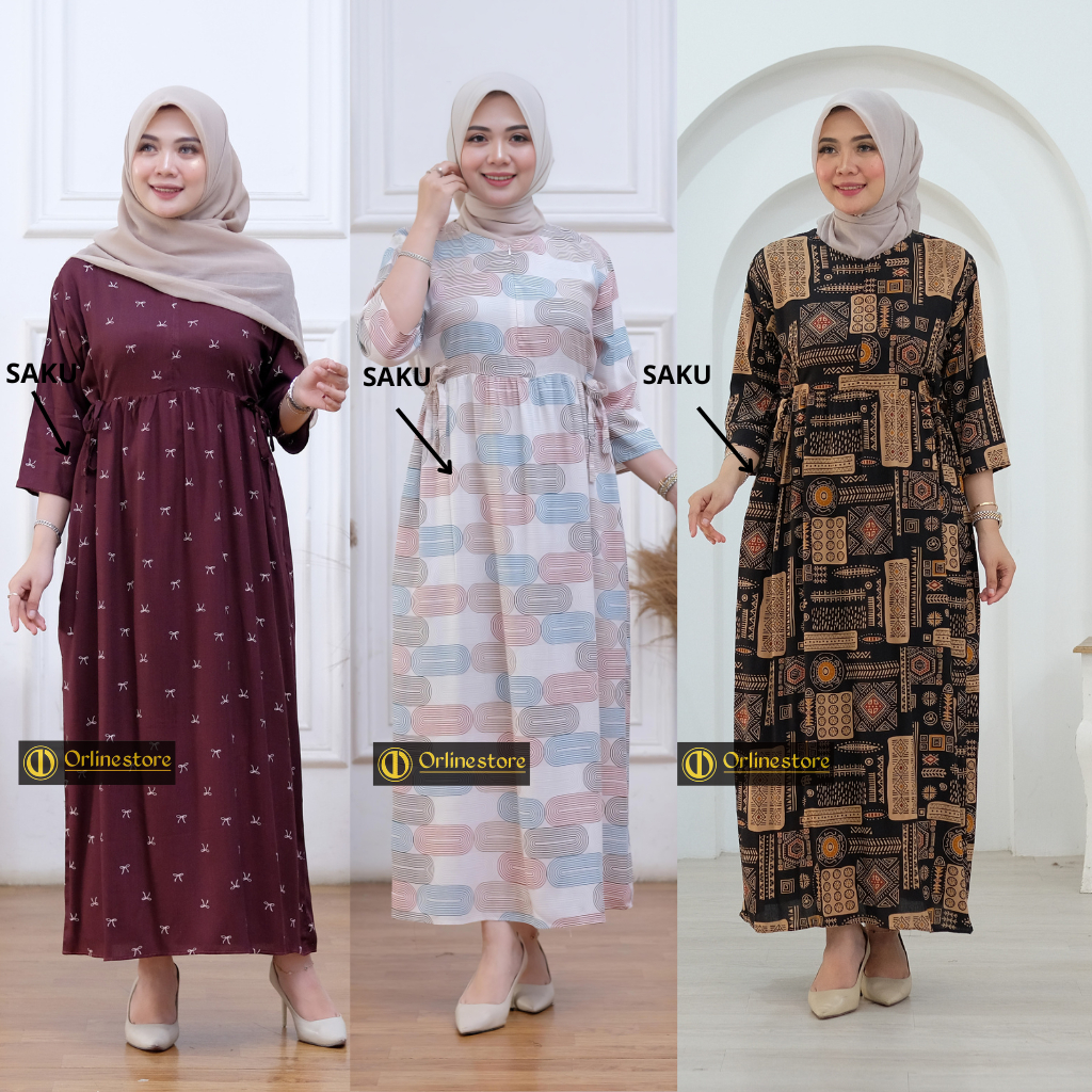 Daster Miranda Midi Dress Miranda Lengan 3/4 Resleting Depan