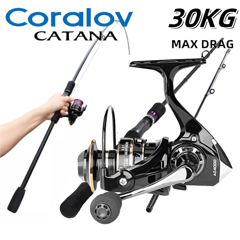 Coralov Max drag 10kg Joran pancing Set 1.65M Spinning Fishing Rod with 5.2:1 Reel Combo for Bass with lure Hook Fishing