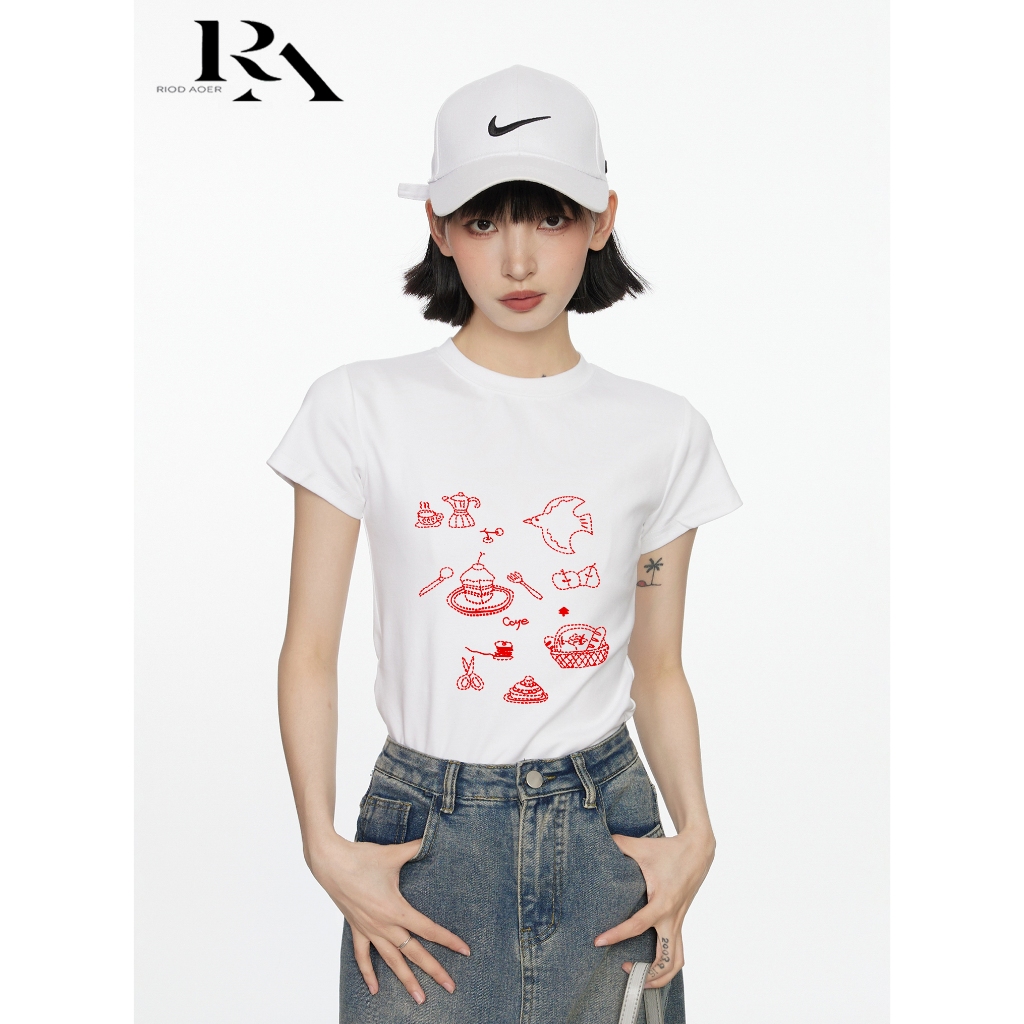 RIOD AOER Pola busur Comfort Premium Combed 24S White - Kaos Wanita Crop top katun baju atasan wanita terbaru