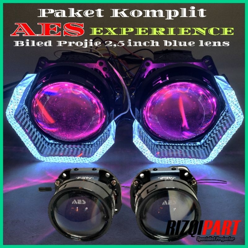 PAKET HEMAT KOMPLIT LAMPU UTAMA HEADLAMP BILED PROJIE AES V2 DAN VAHID G13 LENSA 2,5 INCH BLUE LENS SEPASANG