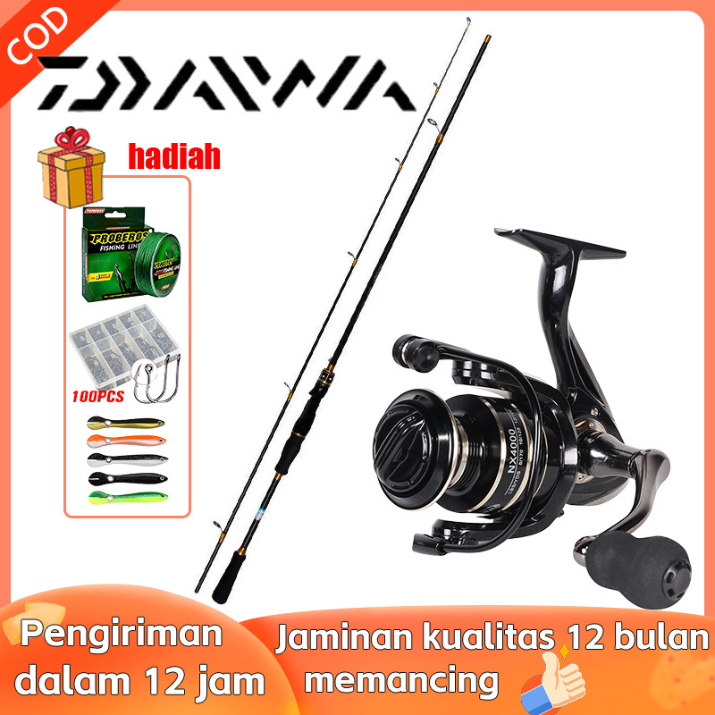 Daiwa Power Handle Reel Pancing Joran Spinning Set Carbon Fiber Joran Ultralight and Pegangan EVA Rasio Gear Reel Pancin