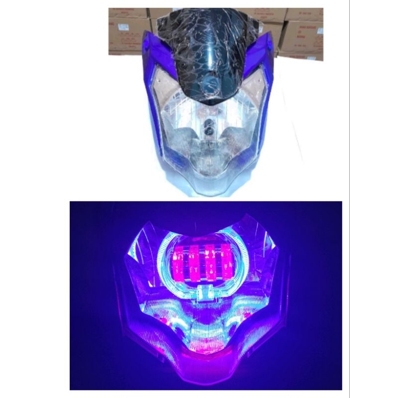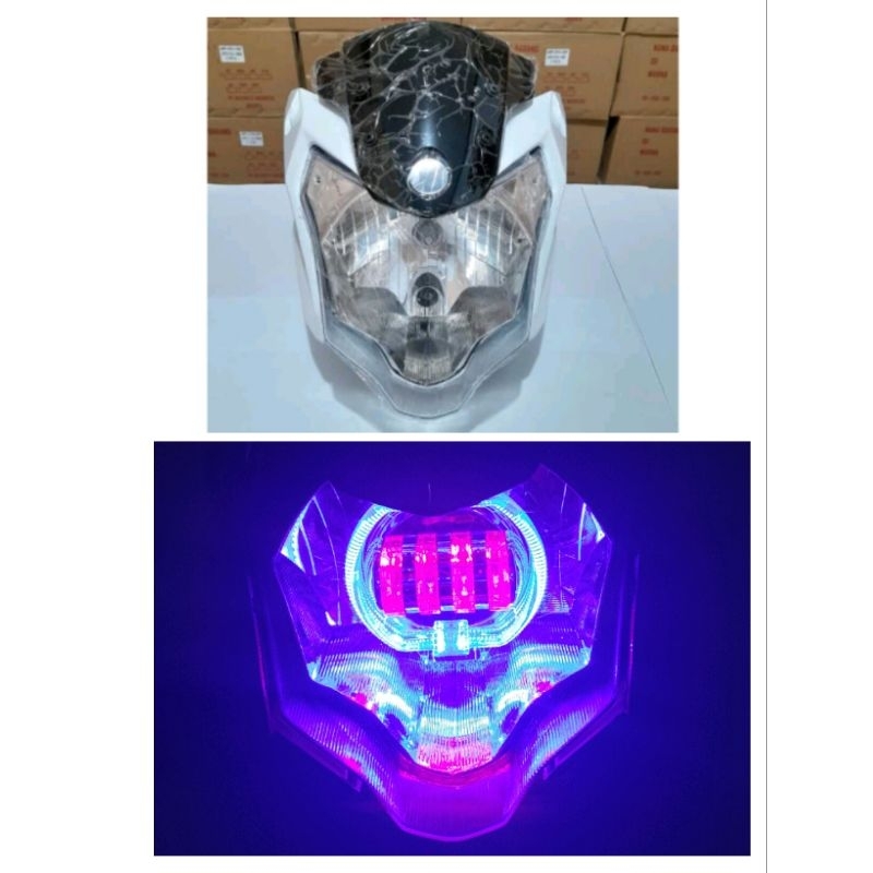 Headlamp Reflektor Plus Mika Kaca Lampu Depan New Vixion Advance Custom Lampu Biled LED Lensa 4 Mata Super Terang Sudah