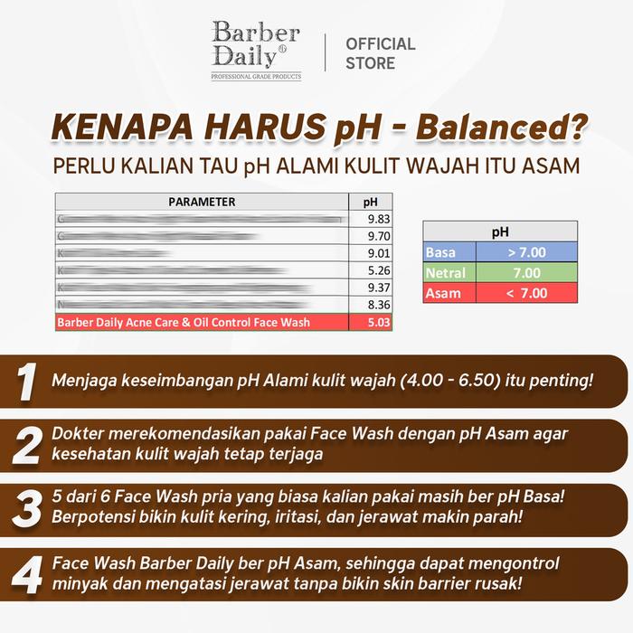 Barber Daily Acne Care & Oil Control Face Wash 100mL - Sabun Cuci Muka Pria Facewash Cowok Membersihkan