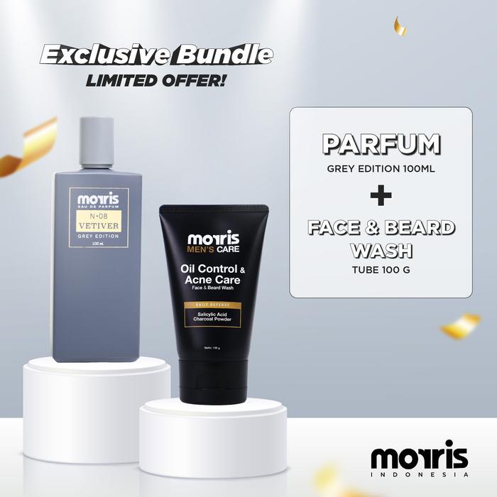 Paket Pria Ganteng & Wangi Sabun Cuci Muka Wajah Facial Wash Oil Control & Acne Care + Perfume Cowok Grey Edition 100 ml