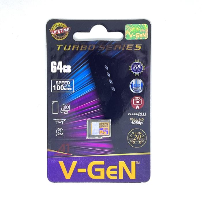 Micro SD Card V-GeN 64GB Class 10 TURBO 100MB/s - Non Adaptor Memory Card Otg