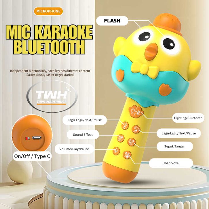 PROMO MIC KARAOKE ANAK BLUETOOTH CANGGIH MODEL TERBARU CHICKEN VERSION BISA KONEK BLUETOOH & GANTI SOUND EFFECT