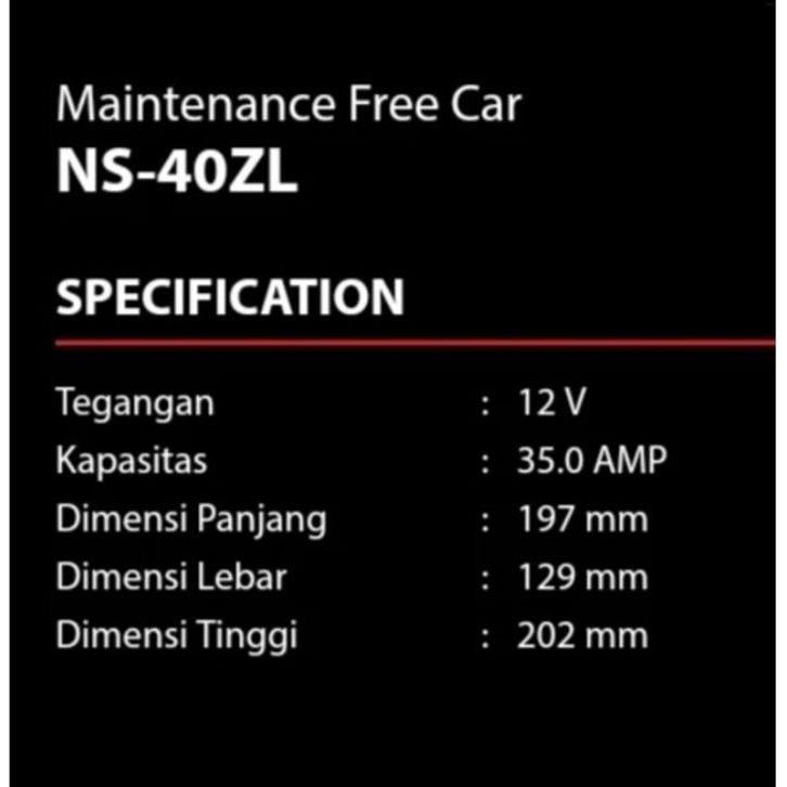 Aki Mobil YUASA NS40ZL 36B20L MF Accu kering 35Ah
