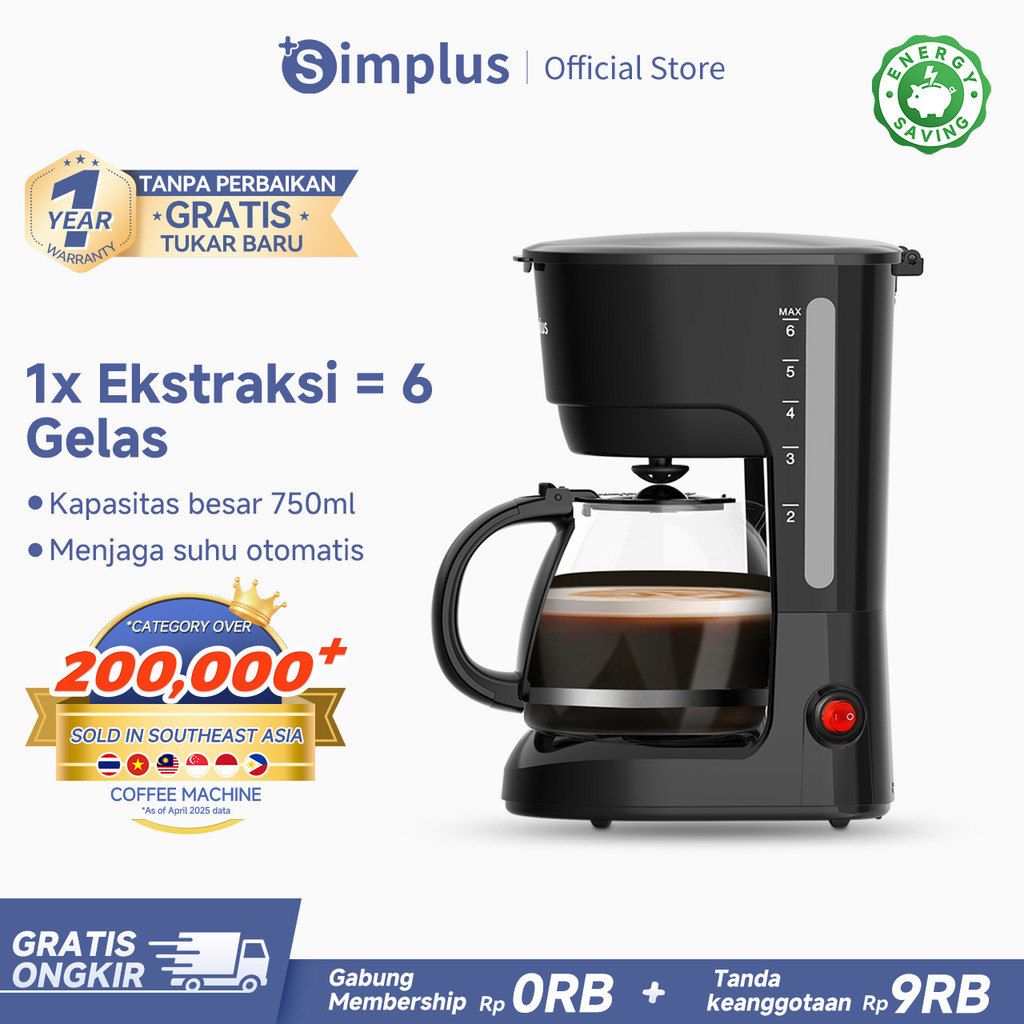 Simplus Mesin Kopi Tipe Drop Peralatan Rumah Tangga 750ml,2 Fungsi Untuk Kopi dan Teh