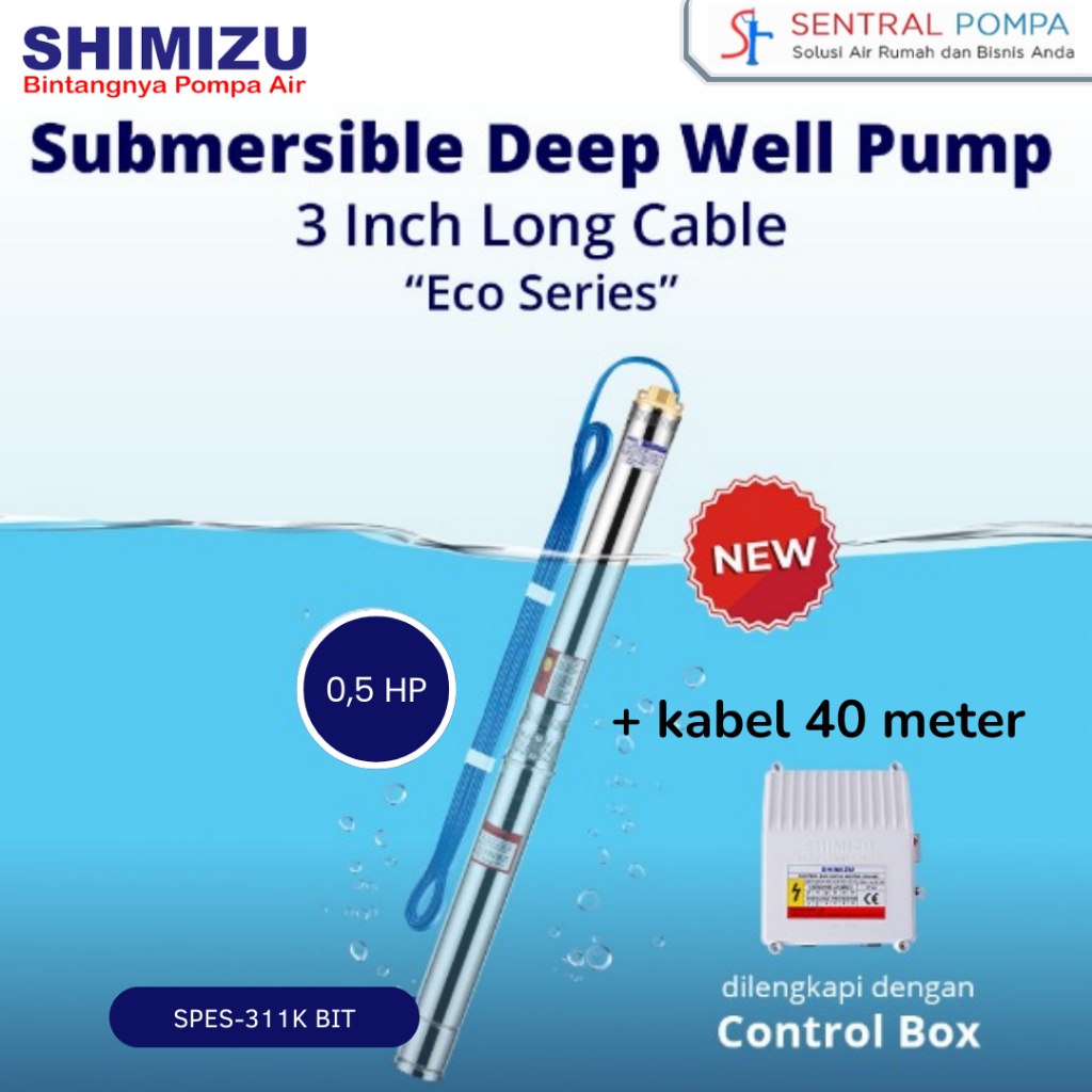 Pompa Submersible Shimizu 1/2 HP SPES 311K BIT + kabel 40 meter + Control Box | Sentral Pompa
