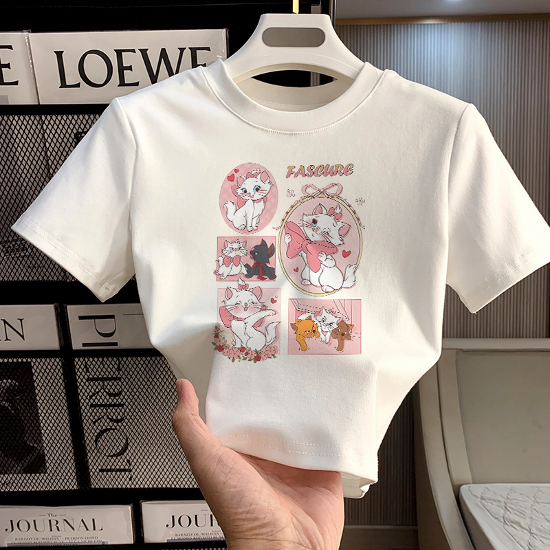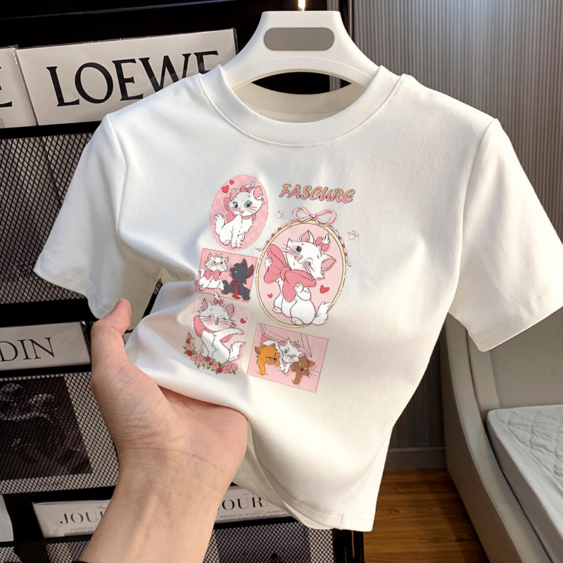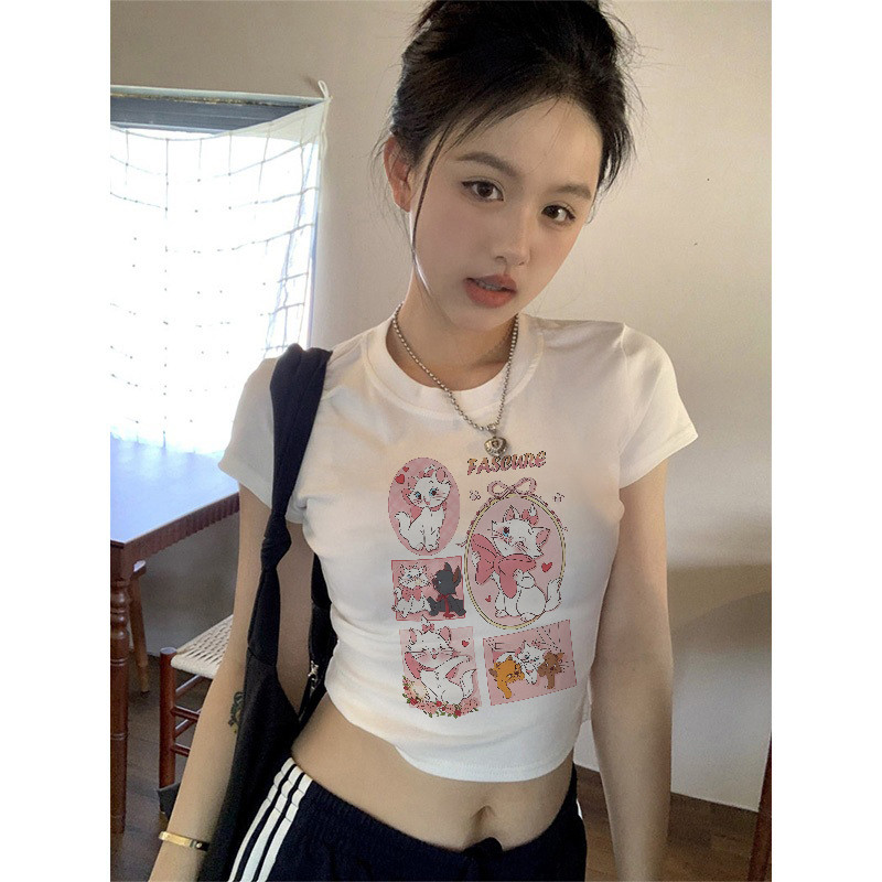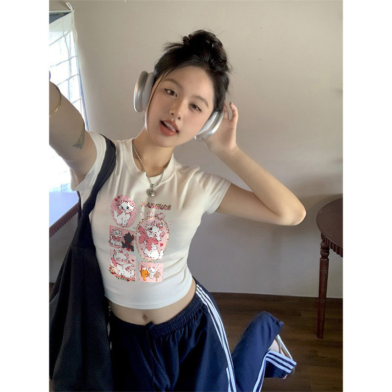 Misco Crop Top y2k Kaos Wanita Lengan Pendek Motif Kucing Lucu Korea Baju Crop Top Korea Style 100% Cotton