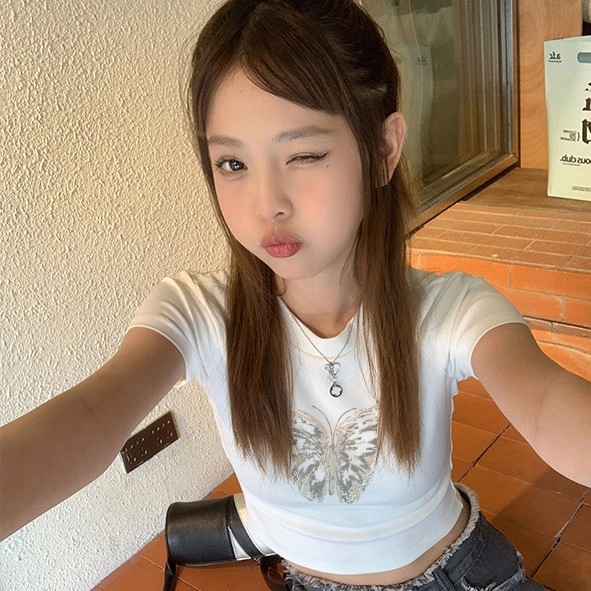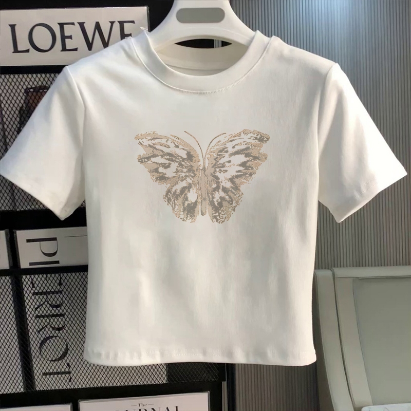 DSSTORY T-shirt Crop Top y2k Lengan Pendek Baju Kaos Crop Wanita | Kupu-Kupu Daun Mati | Baju Atasan Wanita Terbaru Crop