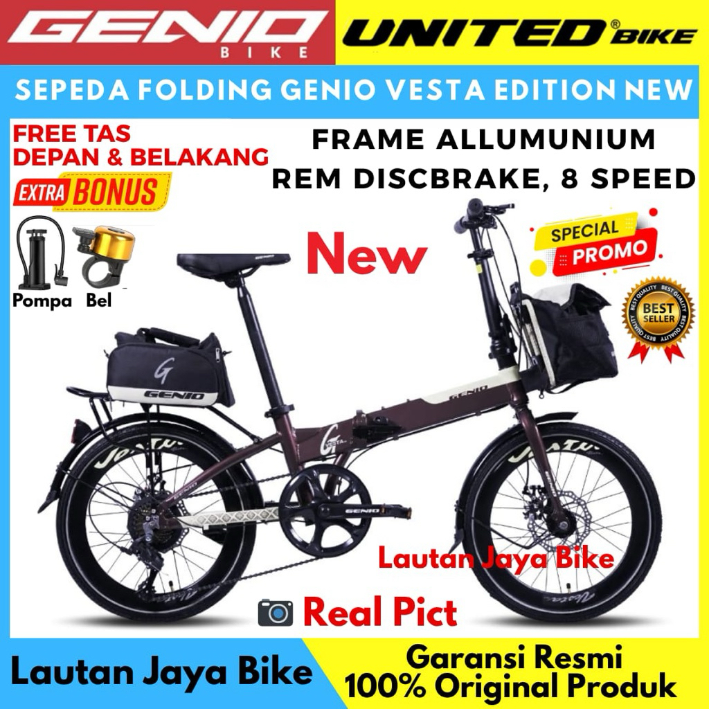 Sepeda Lipat 20 Genio Vesta Frame Aluminium Free Bag KHUSUS INSTANT